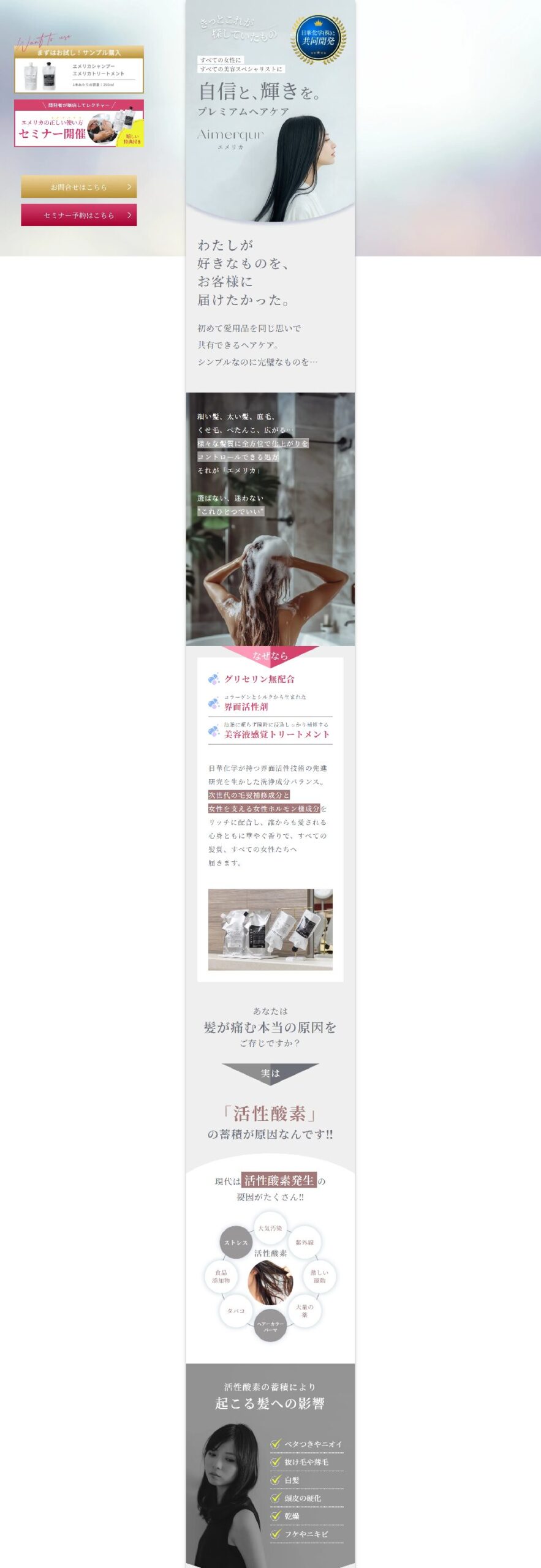 名古屋市千種区の「クレハバラ美容室」様が自社開発したヘアケアブランド「エメリカ(シャンプー・トリートメント)」の立ち上げに伴い、LP設計とビジュアル開発をご依頼いただきました。
